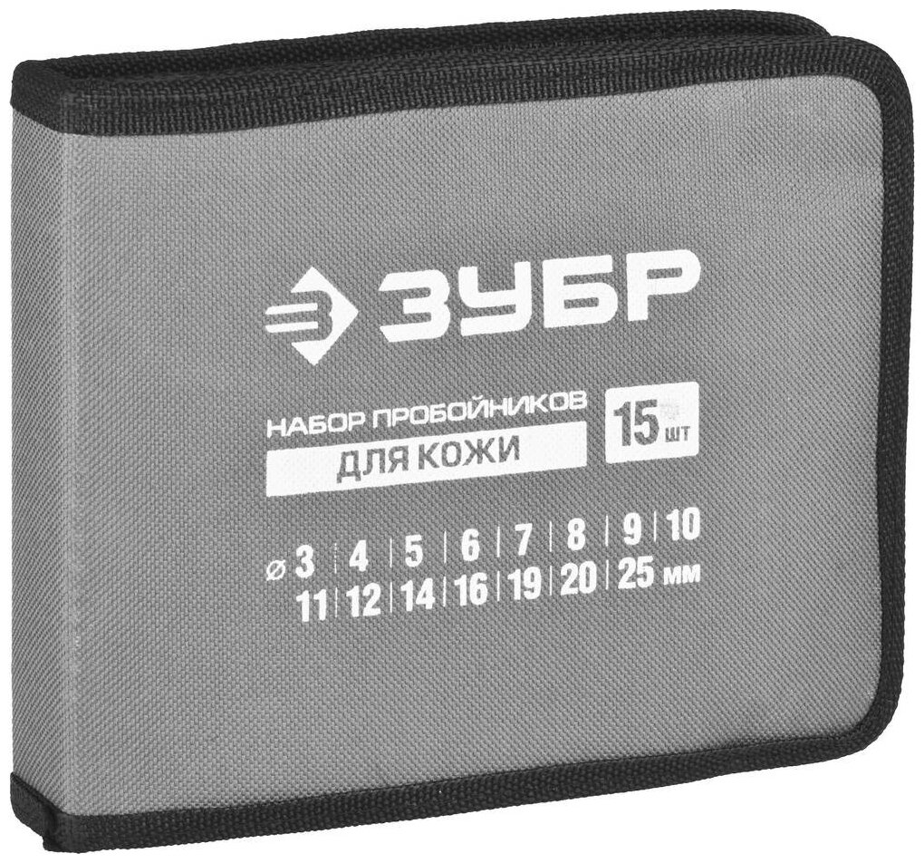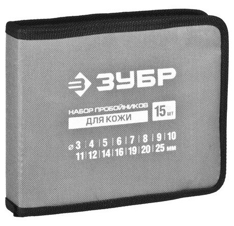 Набор пробойников для кожи ЗУБР мастер 3-25 мм, 15 шт
