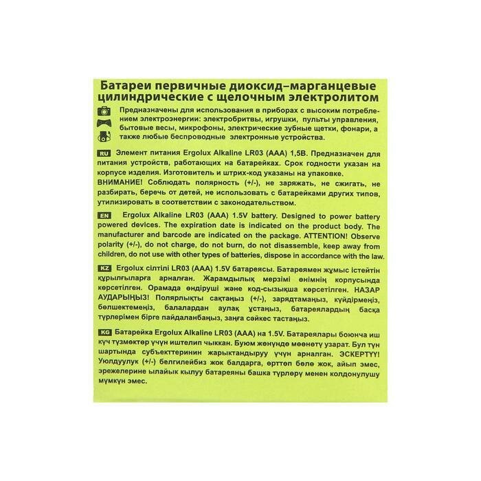 Ergolux LR03 Alkaline BP-24 LR03 Bp-24 батарейка1.5В