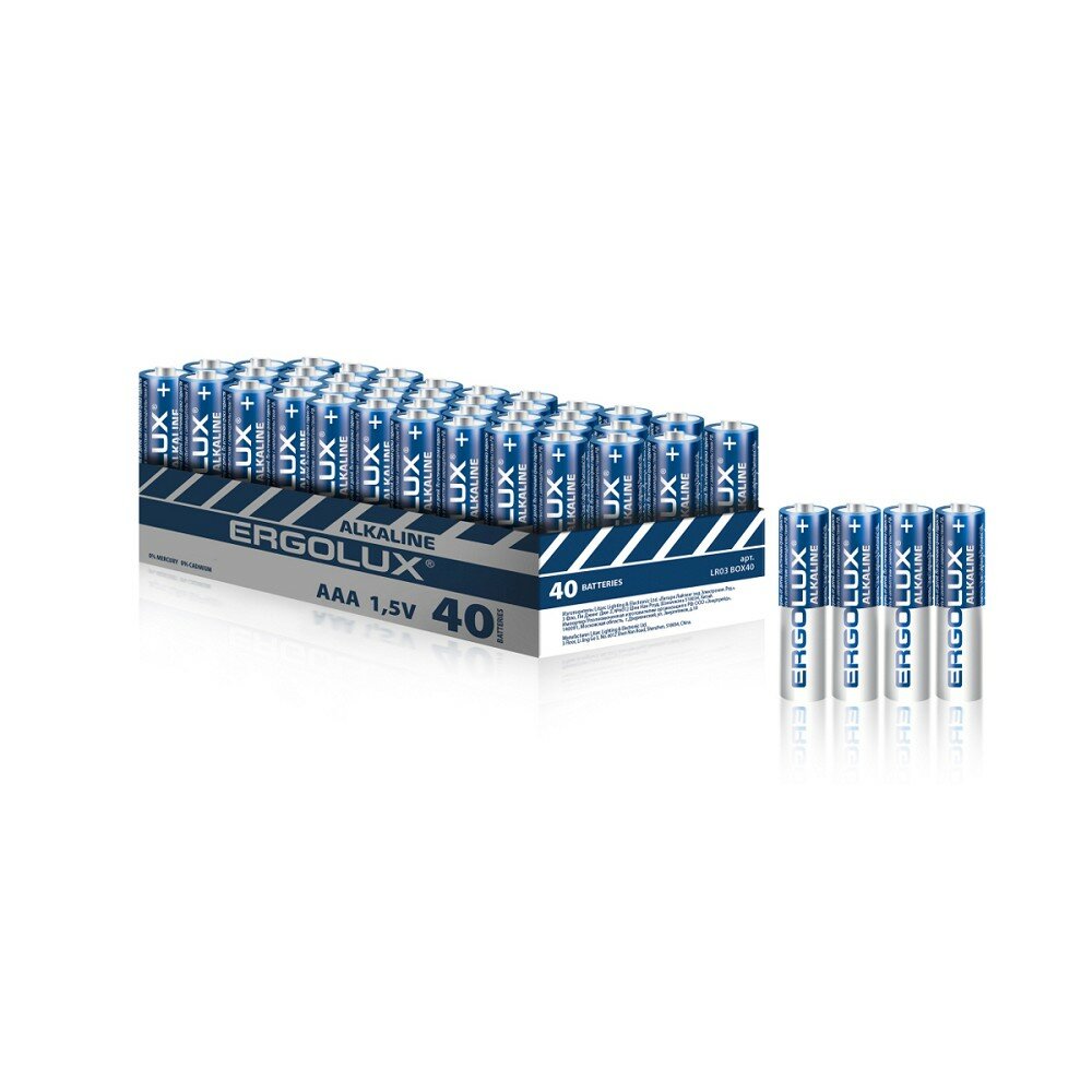 LR03 Alkaline BOX40 (промо, , батарейка,1.5В), ERGOLUX LR03 BOX40 (1 упак)