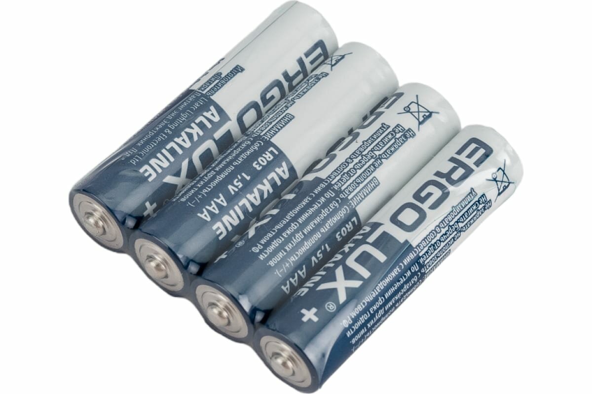 Батарейки щелочные Ergolux - тип AAA, 1.5В, 4 шт. в упаковке