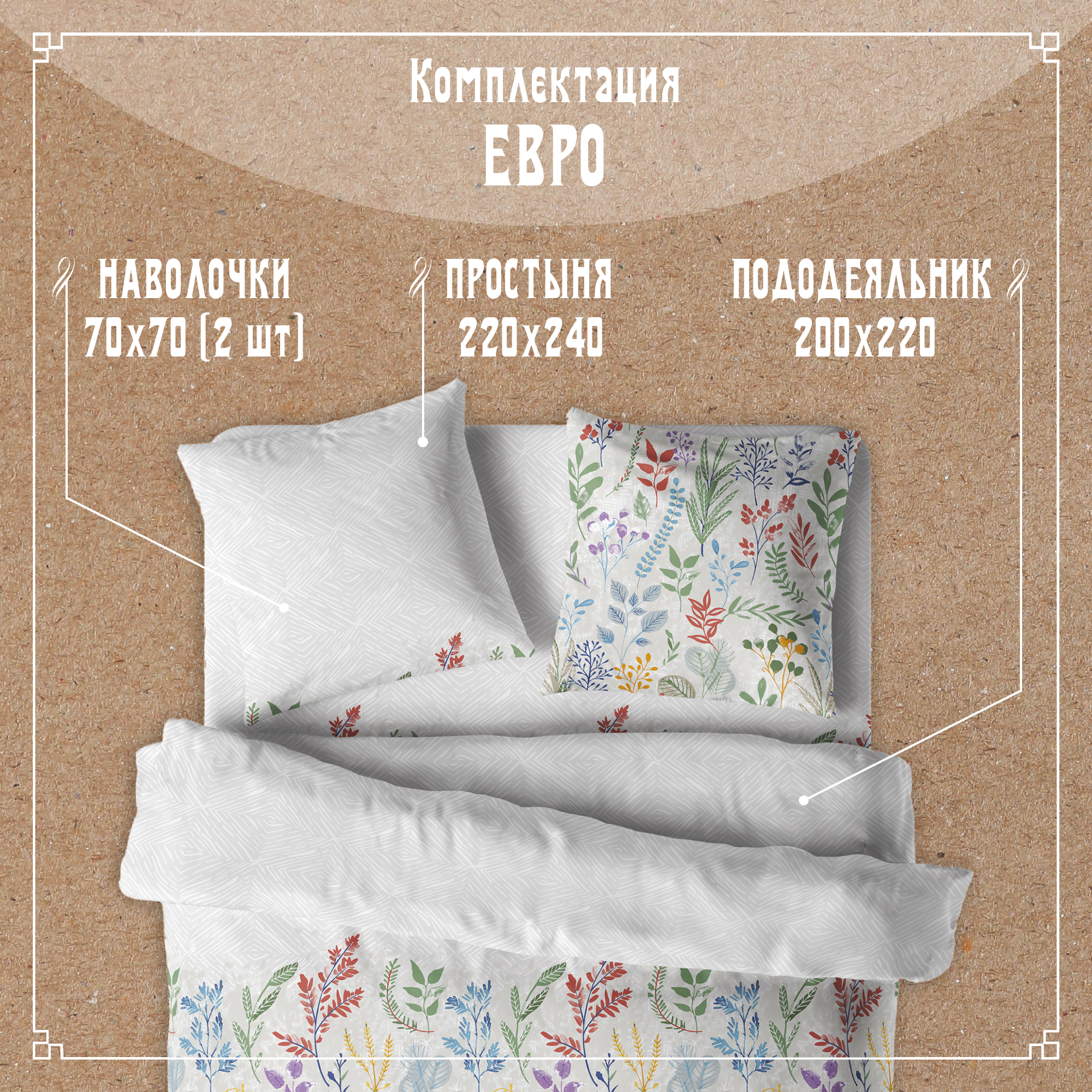 Комплект постельного белья из бязи Евро Самойловский текстиль дизайн Гербарий 220х240, 2 наволочки 50х70, пододеяльник 200х220, хлопок 100%