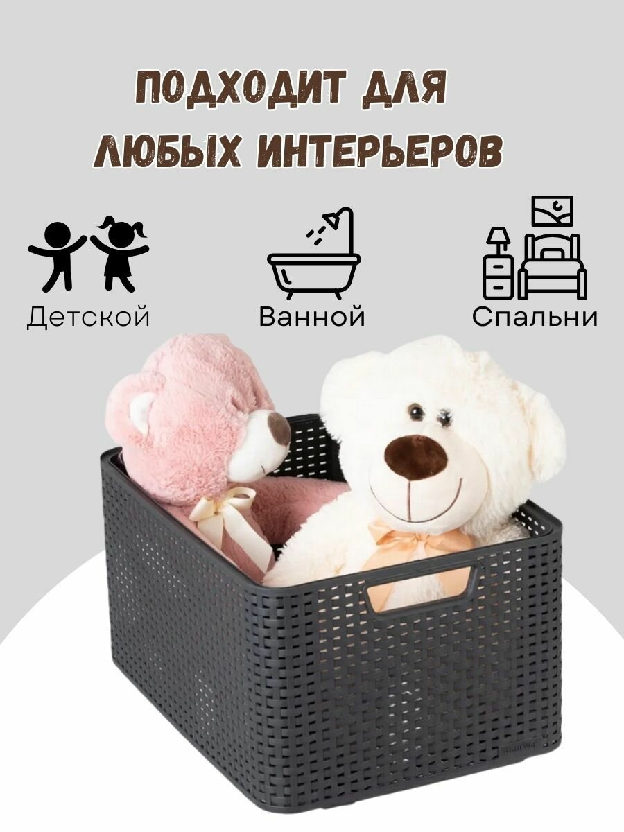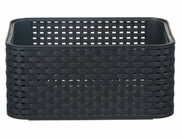 Коробка/корзина для хранения с ручками 6 л, CURVER RATTAN STYLE BOX S, пластик,тёмно-серая