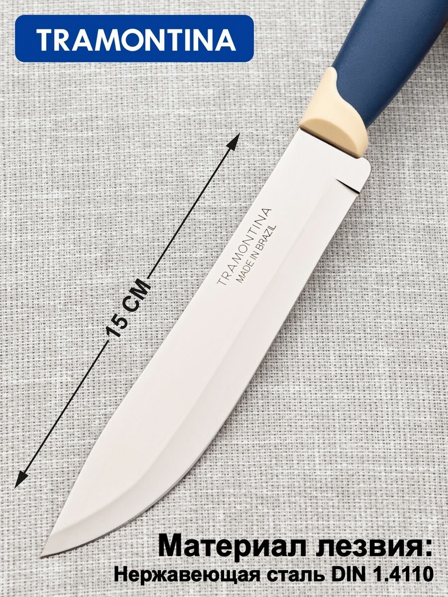СохранитьНож кухонный универсальный 15 см Tramontina Multicolor широкое лезвие, синяя ручка, 23522/016 интересное:
