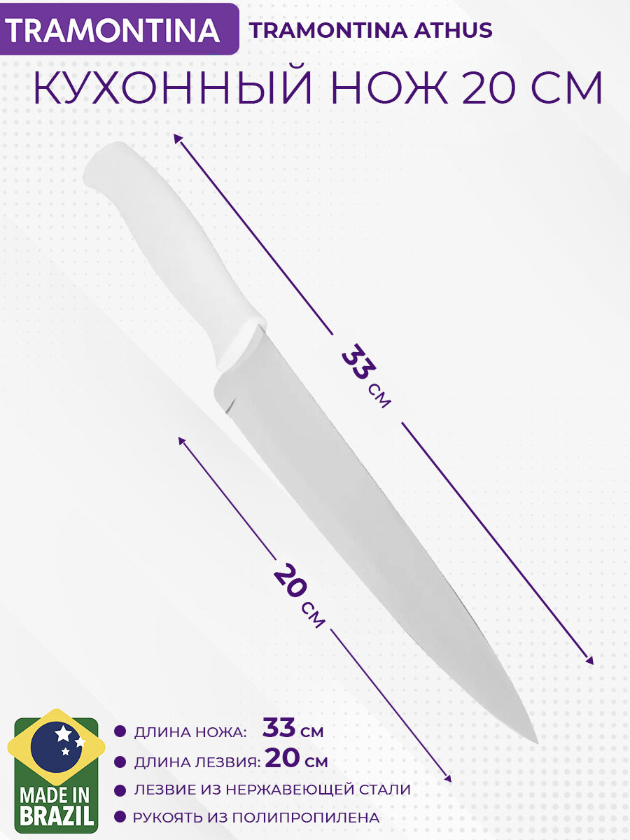 Нож кухонный 20 см Tramontina Athus, белая ручка, 23084/089