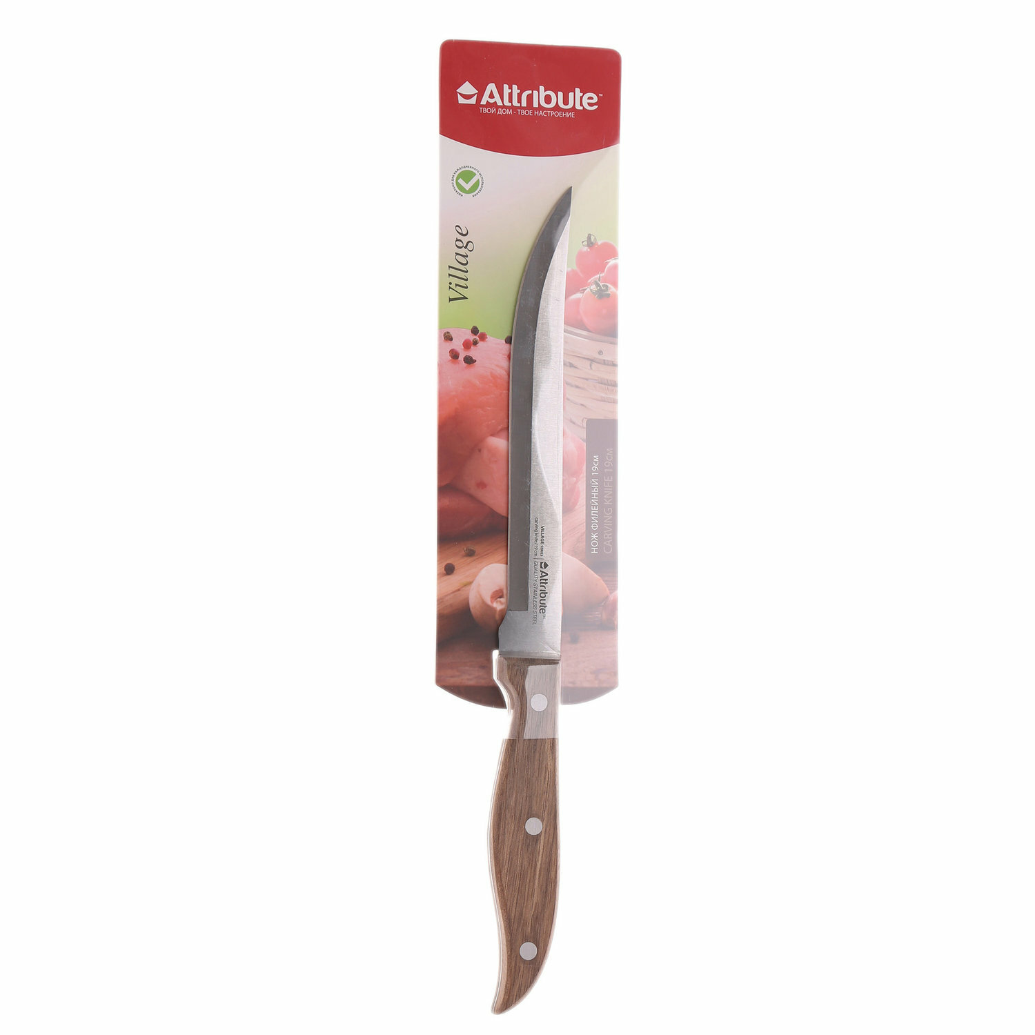 Нож филейный Attribute VILLAGE Длина лезвия 19см нержавеющая сталь ручка дерево для кухни приборы