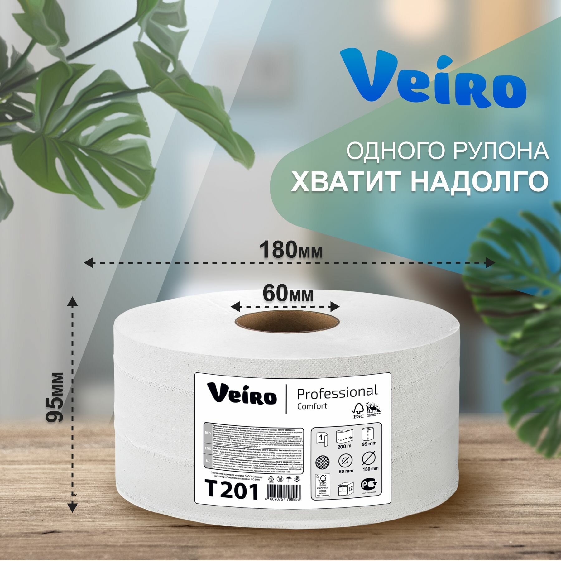 Туалетная бумага для диспенсеров Veiro Professional Comfort T201 в средних рулонах, 1 слой, 200 метров (комплект из 12 шт)