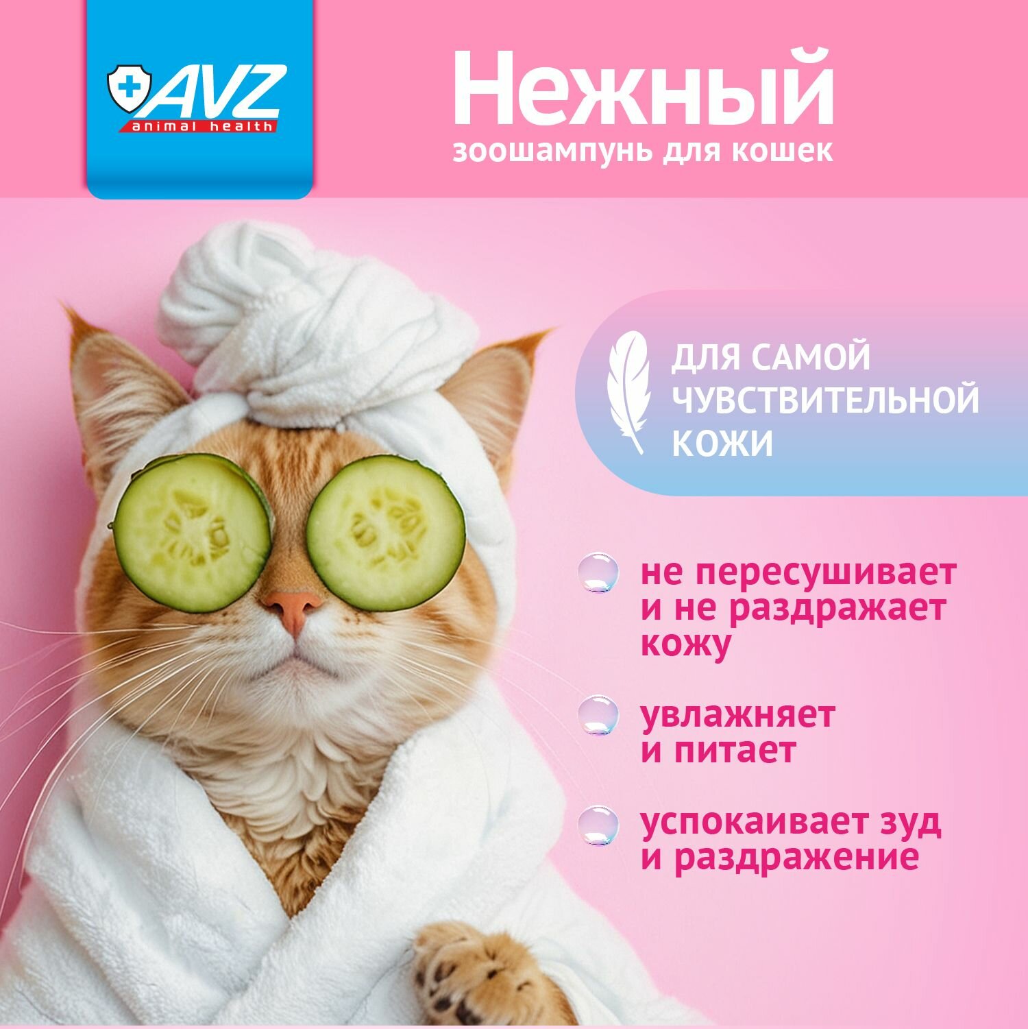 Шампунь АВЗ Нежный для кошек, гипоаллергенный, 180 мл