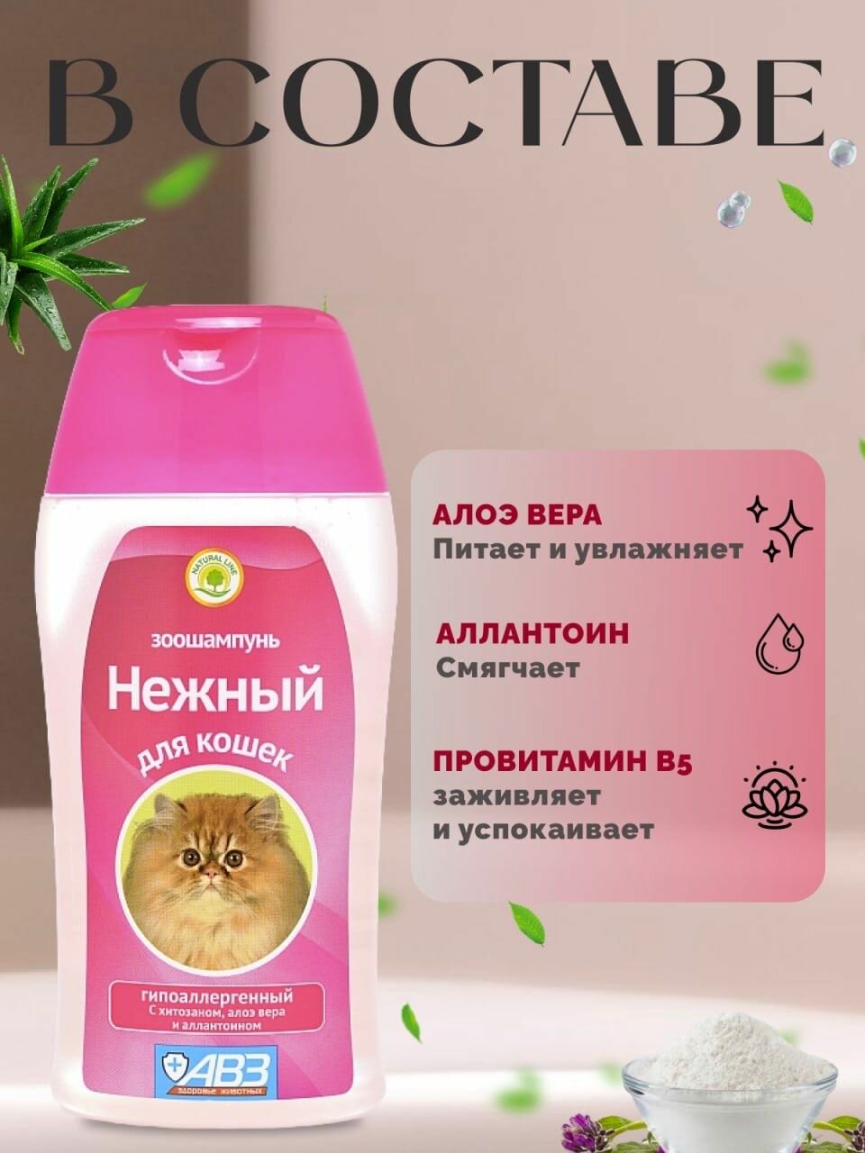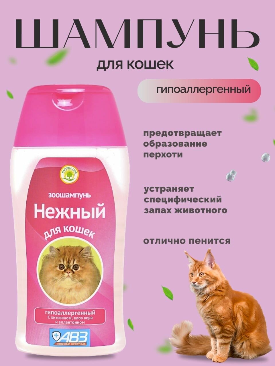АВЗ "Нежный" шампунь гипоаллергенный для кошек с хитозаном, 180 мл