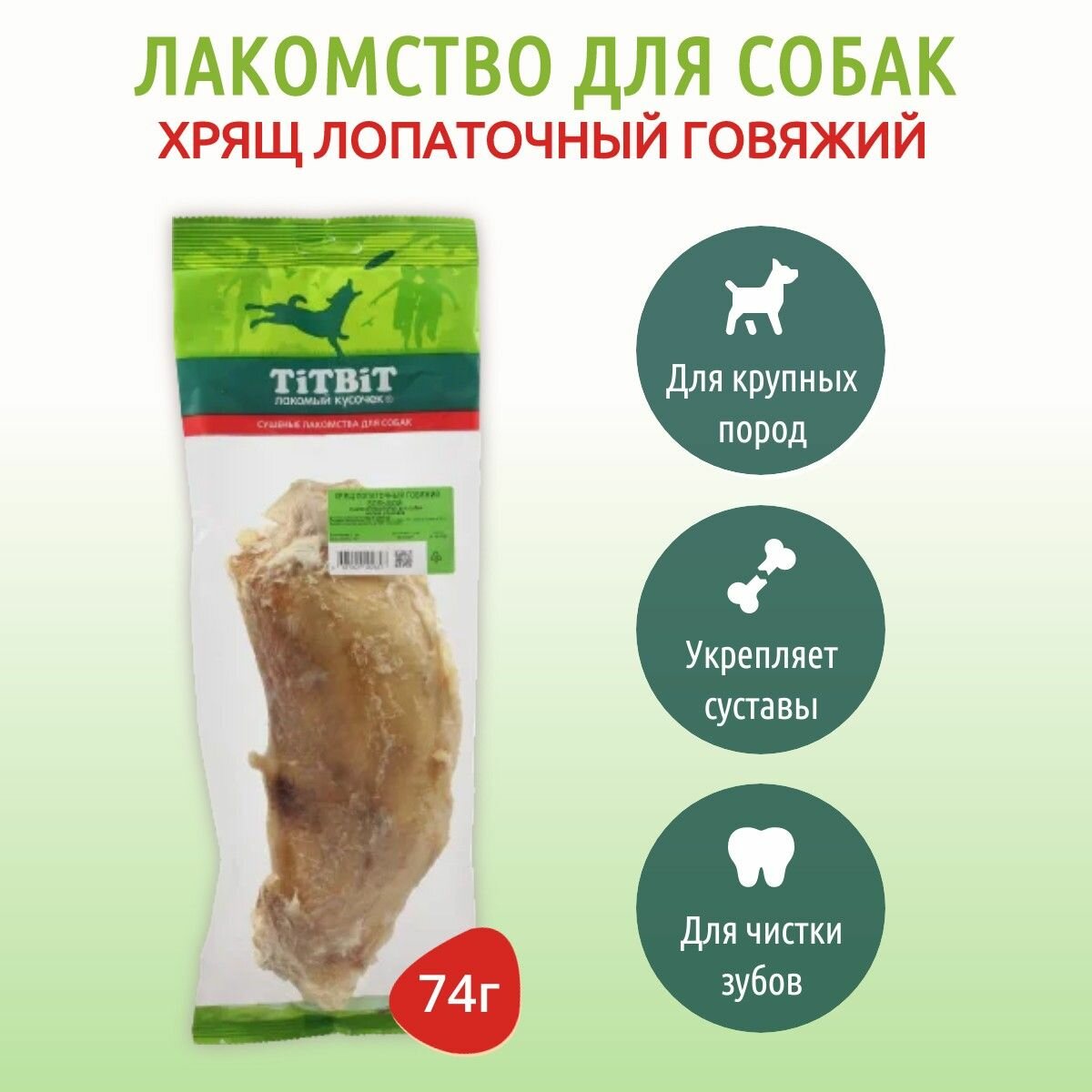 TiTBiT 0,074кг хрящ лопаточный говяжий большой - мягкая упаковка
