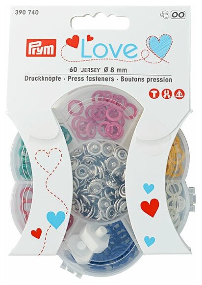 390740 Набор кнопки Джерси Color 8 мм 60 шт 6 цветов в боксе с установочным инструментом, Love Prym