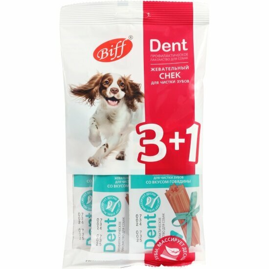 Лакомство для собак средних пород Biff DENT, Жевательный снек для чистки зубов со вкусом телятины 77 г.