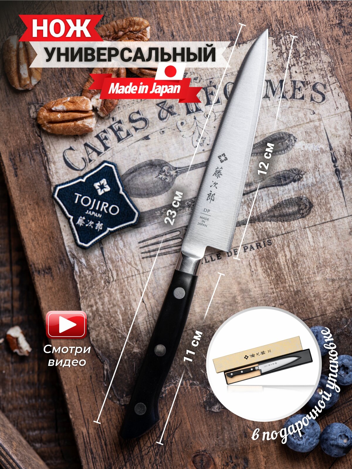 Ниже Вы можете прочитать отзывы на Нож Кухонный Универсальный TOJIRO (F-801), длина лезвия 12 см, сталь VG10, рукоять древесина, заточка #8000, ознакомится с подробными характеристиками, посмотреть интересные обзоры и фотографии на Нож Кухонный Универсальный TOJIRO (F-801), длина лезвия 12 см, сталь VG10, рукоять древесина, заточка #8000.