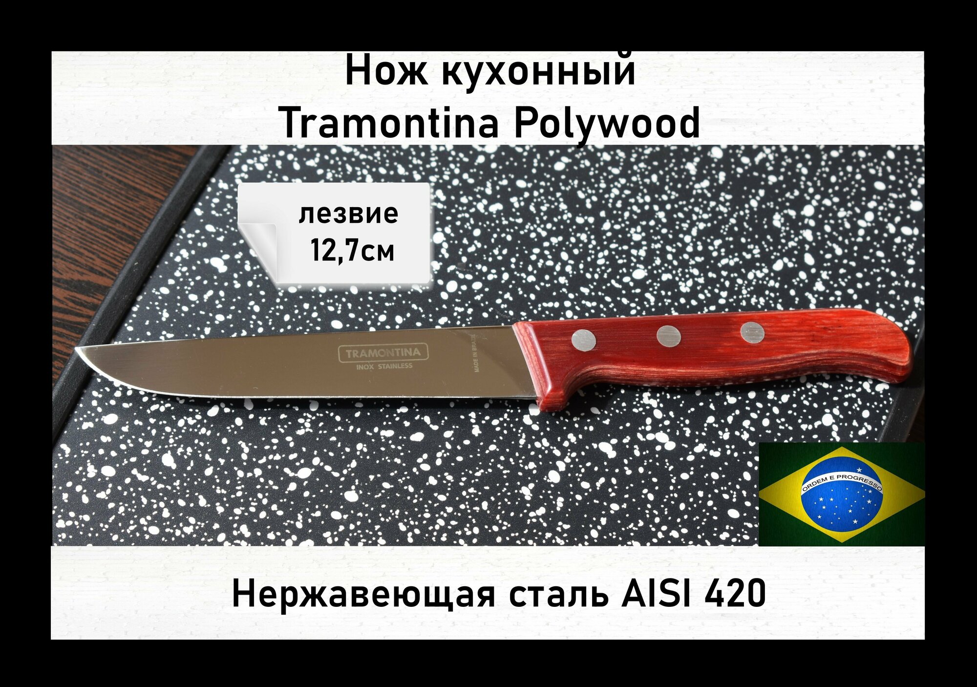 Нож кухонный для мяса, стейка 12,7 см Tramontina Polywood, универсальный нож, 21127/075 интересное: