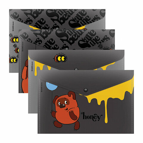 Папка-конверт на кнопке пластиковая ErichKrause Винни-Пух, A4, ассорти, 61152, 12 штук