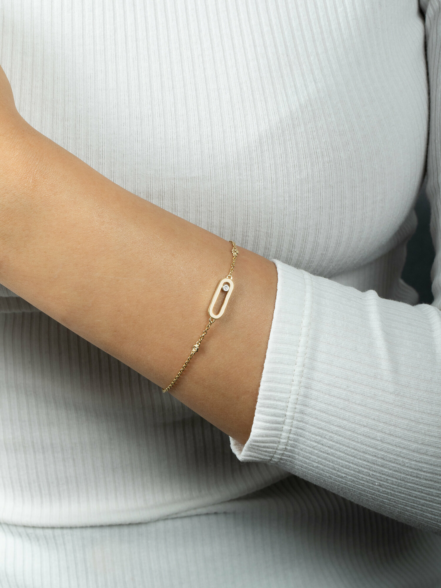 золотой браслет с плавающим бриллиантом