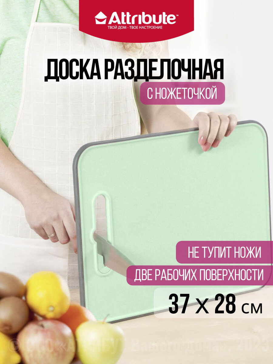 Доска разделочная FIBER 28x37см с ножеточкой, mint ATTRIBUTE CUT.BOAR