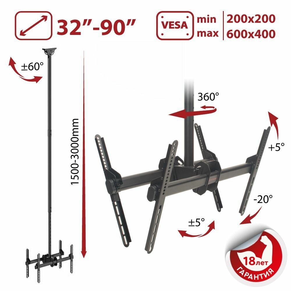 Кронштейн для телевизора потолочный Arm Media LCD-3050 / до 90 дюймов / до 2 х 45 кг / vesa 600x400 / наклонно-поворотное крепление для тв / держатель для телевизора