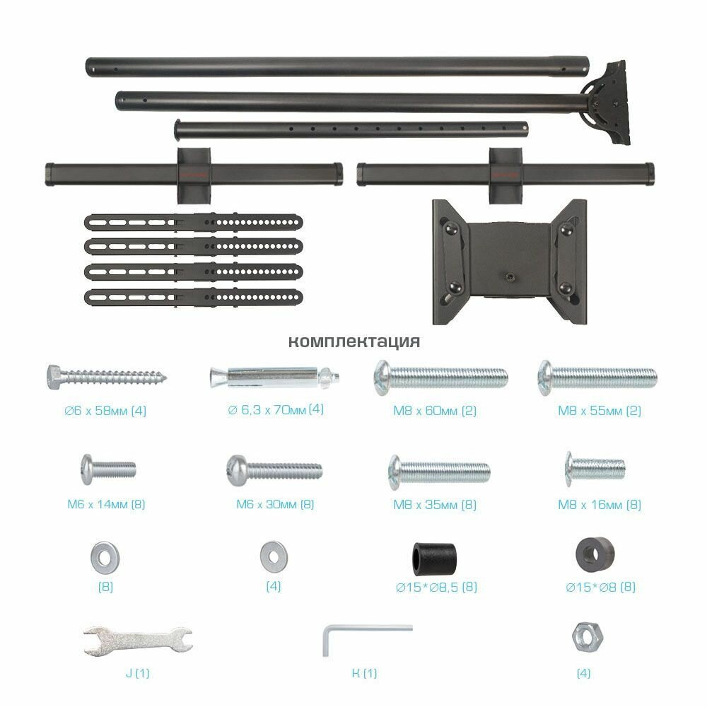 Кронштейн ARM Media LCD-3050 черный, профессиональный потолочный для двух LED/LCD/ TV26"-65 max 2х45 кг, 3 ст свободы,max VESA 600x400 мм
