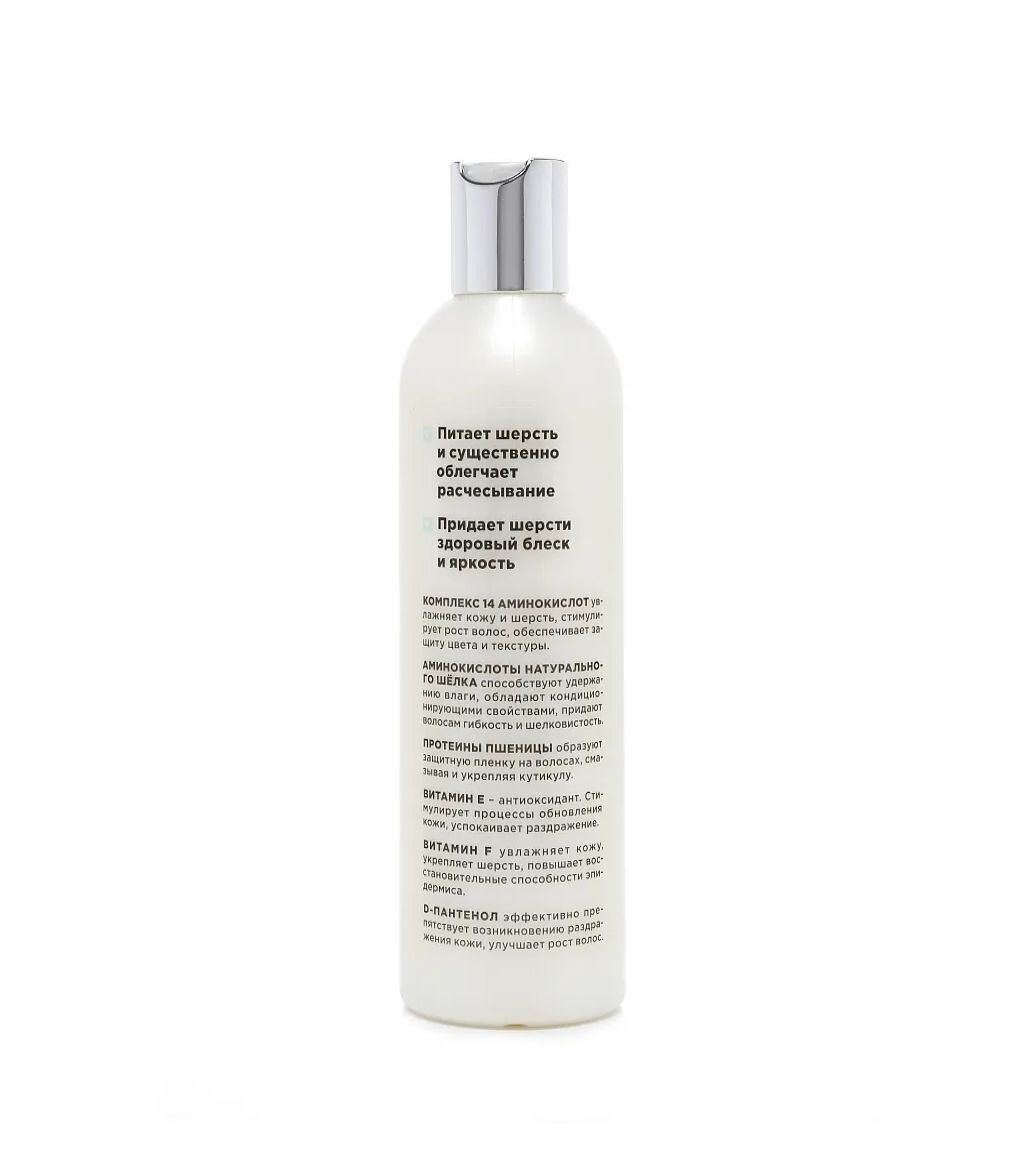 | Плюсы: | Придает шелковистость шерсти. Достаточно легко смыть. Не имеет редкого запаха |