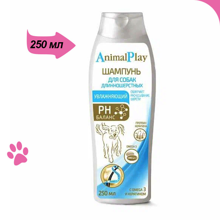 Шампунь Animal Play для длинношерстных собак Увлажняющий с Omega 3 и кератином 250мл / 1 шт