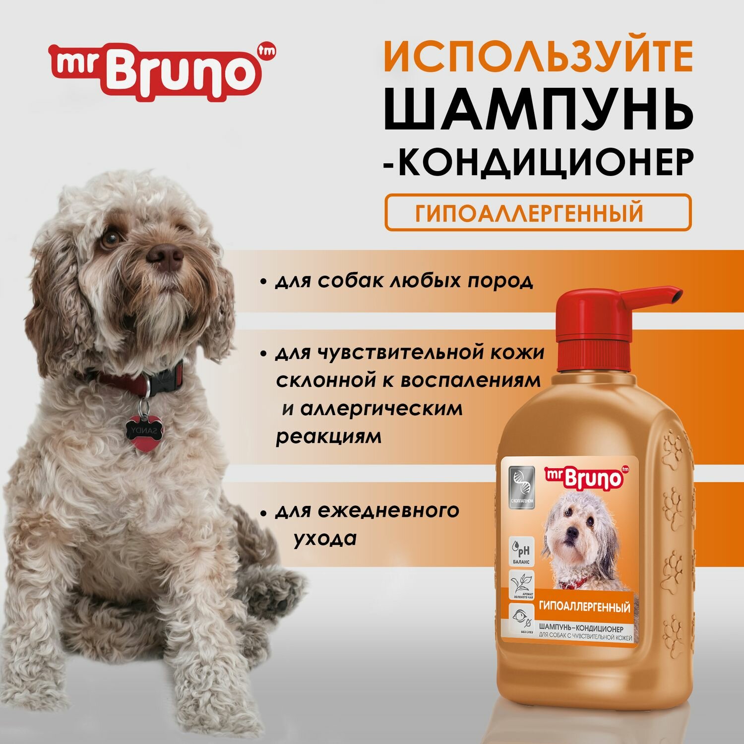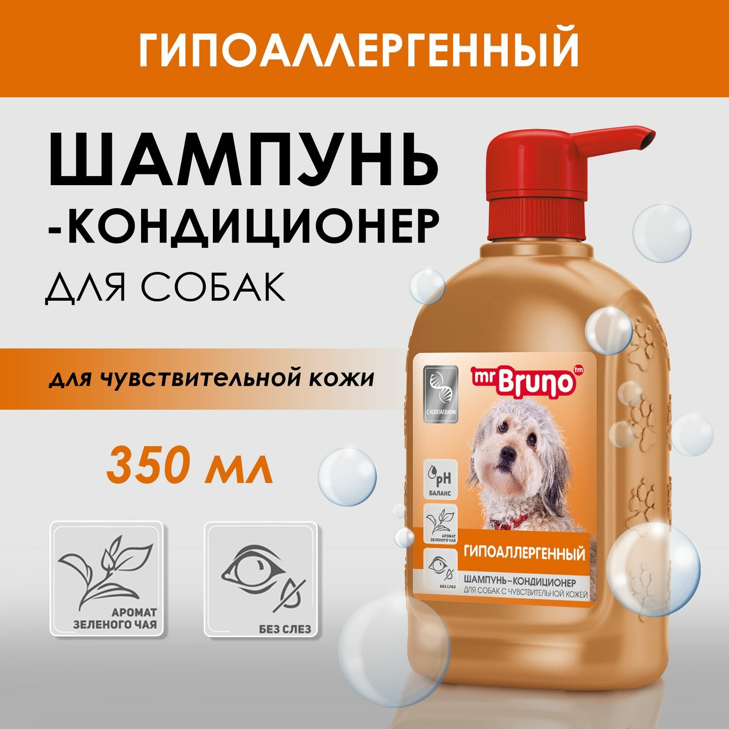Шампунь-кондиционер "Mr. Bruno" гипоаллергенный для собак, 350 мл