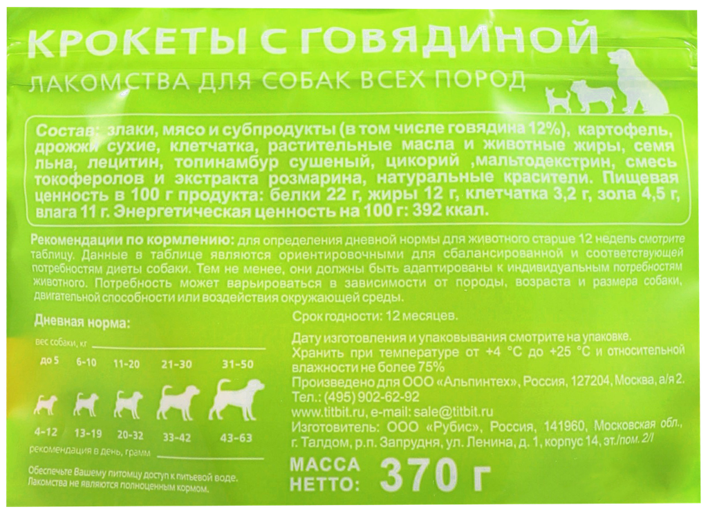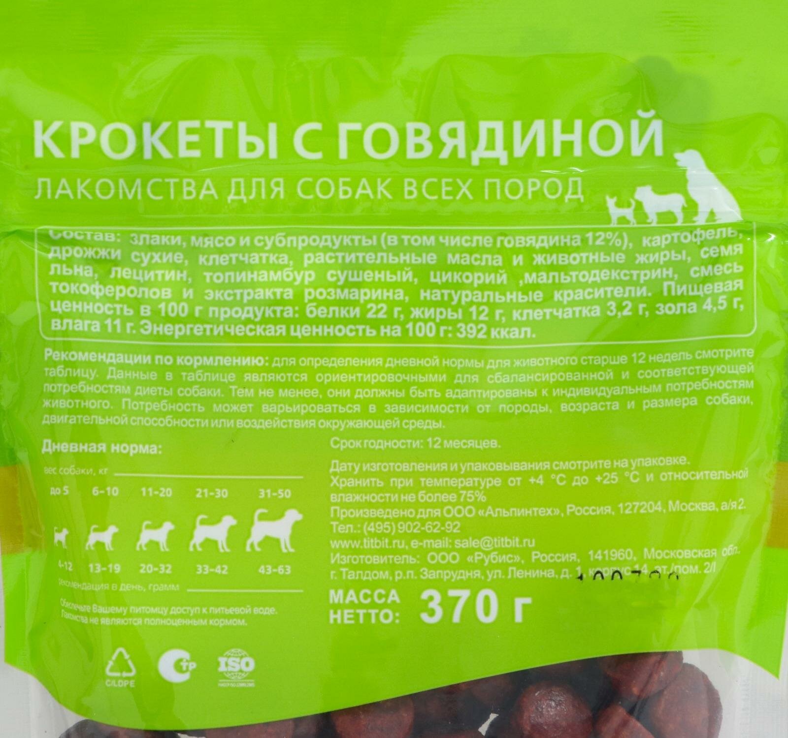 Купить Лакомство TiTBiT Крокеты с говядиной XXL для собак мелких пород (370 г)