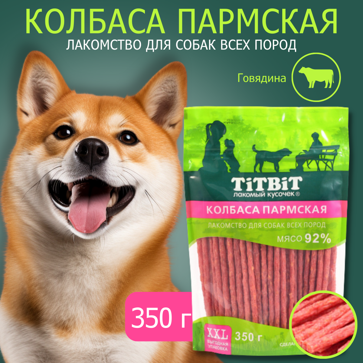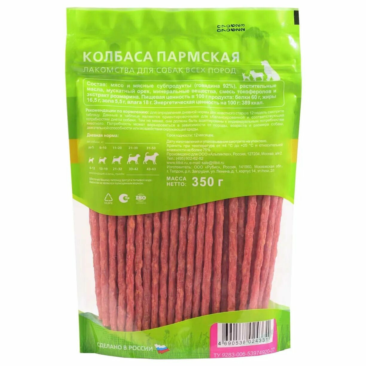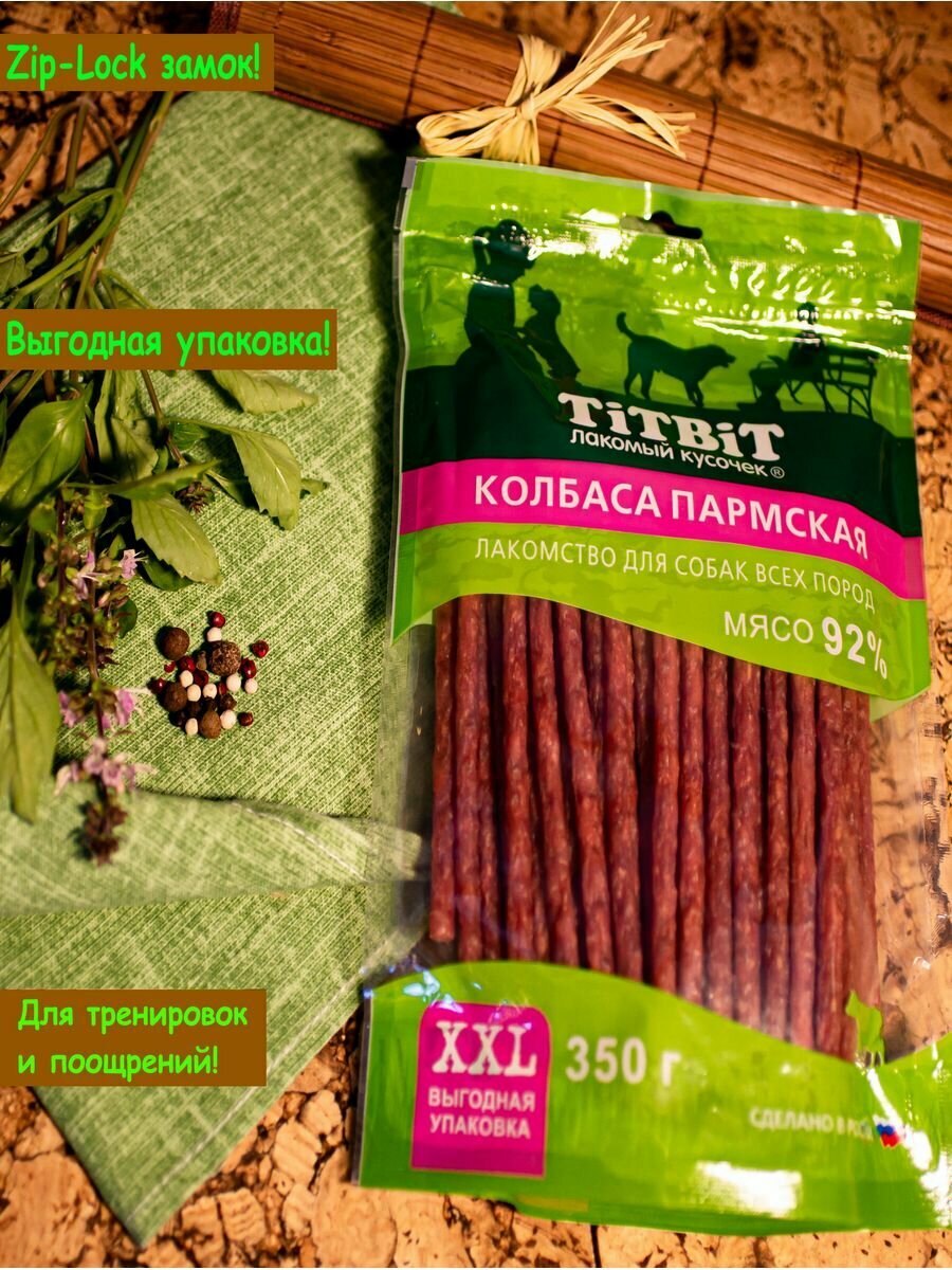 Лакомство для собак всех пород TiTBiT, колбаса "Пармская", выгодная упаковка XXL - 350 г