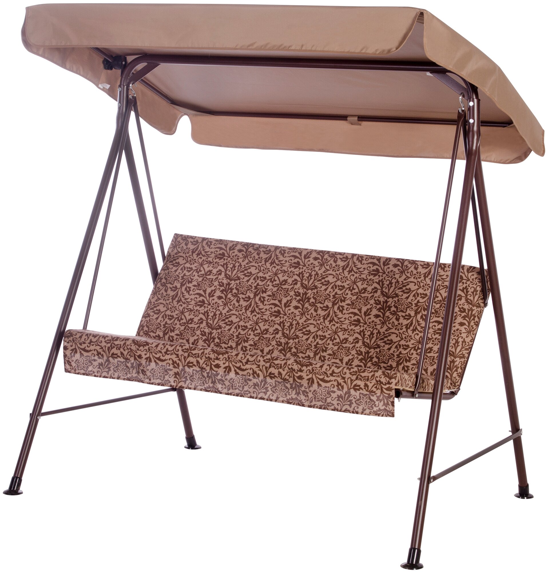Качели садовые 4-х местные Ольса Шатер ткань панама каркас коричневый, ткань полоска бежево-коричневная