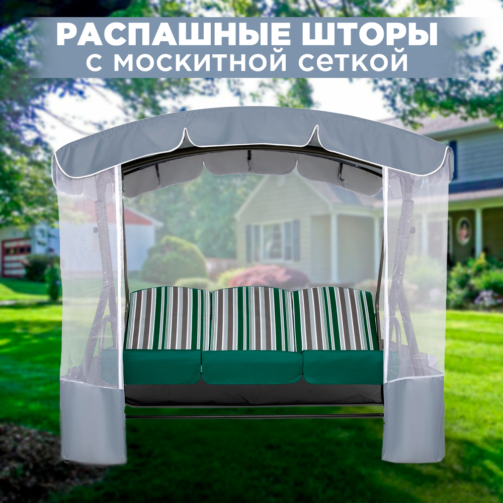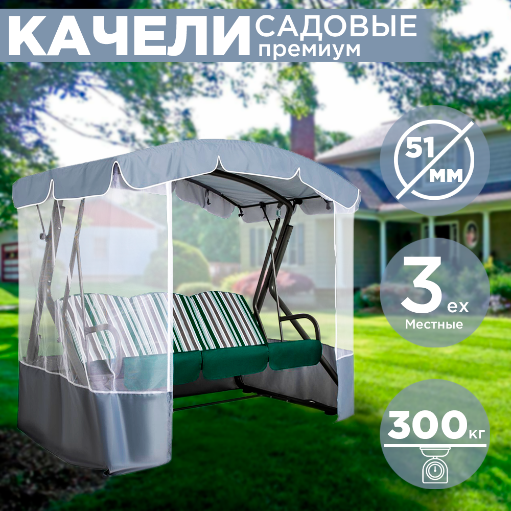 Садовые качели оазис премиум для дачи уличные 3-местные подвесные с тентом и москитной сеткой серый интересное: