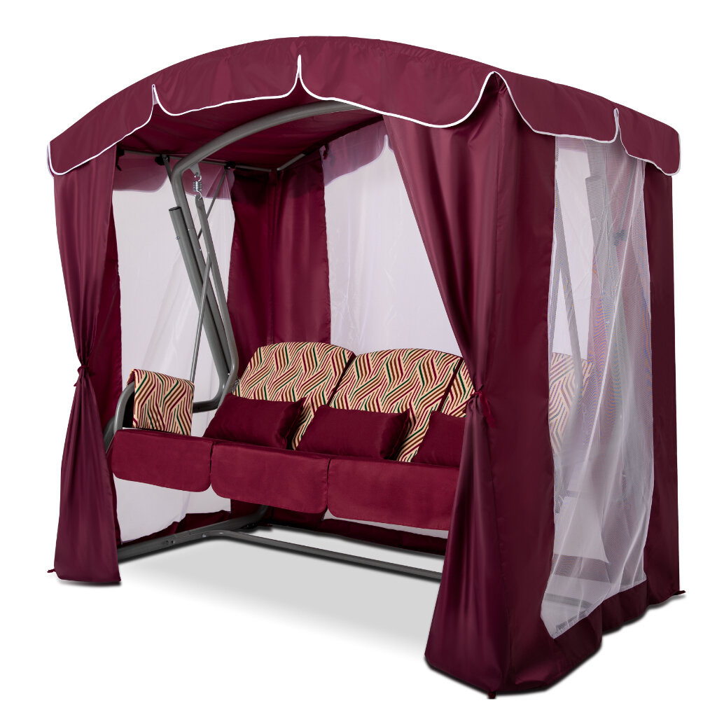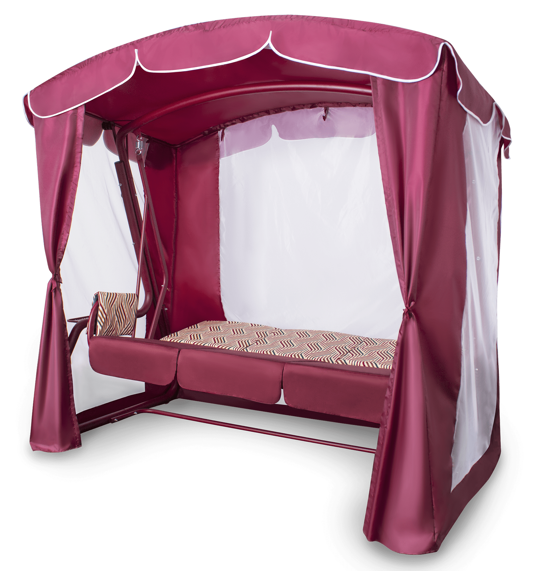 Садовые качели 3-местные с москитной сеткой ARNO-WERK Оазис Люкс вензель бордовый