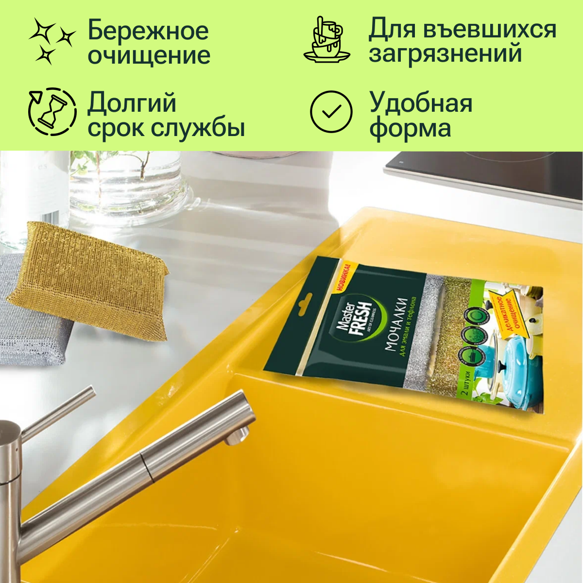 СохранитьМочалки для посуды Master Fresh для эмали и тефлона, серебристый/золотистый, 2 шт. интересное: