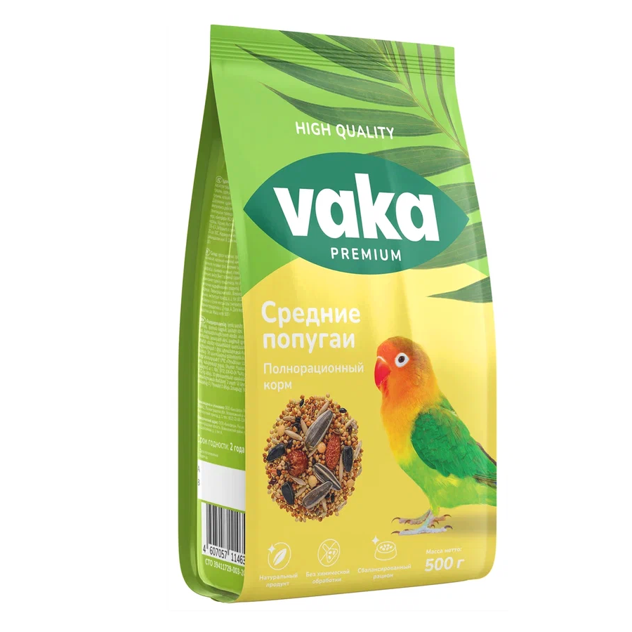 Вака Корм для птиц High Quality для средних попугаев, 500 г