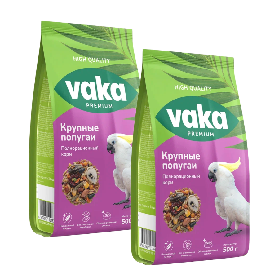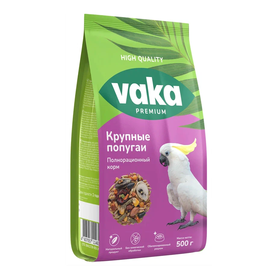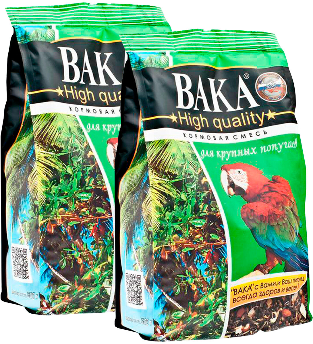 Вака Корм для птиц High Quality крупных попугаев, 500 г