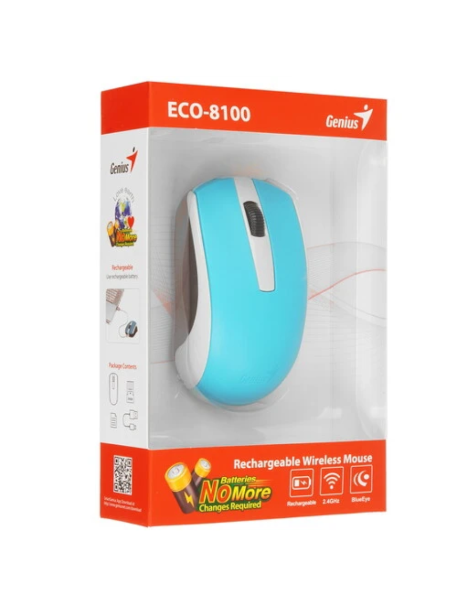 Мышь беспроводная Genius ECO-8100 голубая (Blue), 2.4GHz, BlueEye 800-1600 dpi, аккумулятор NiMH