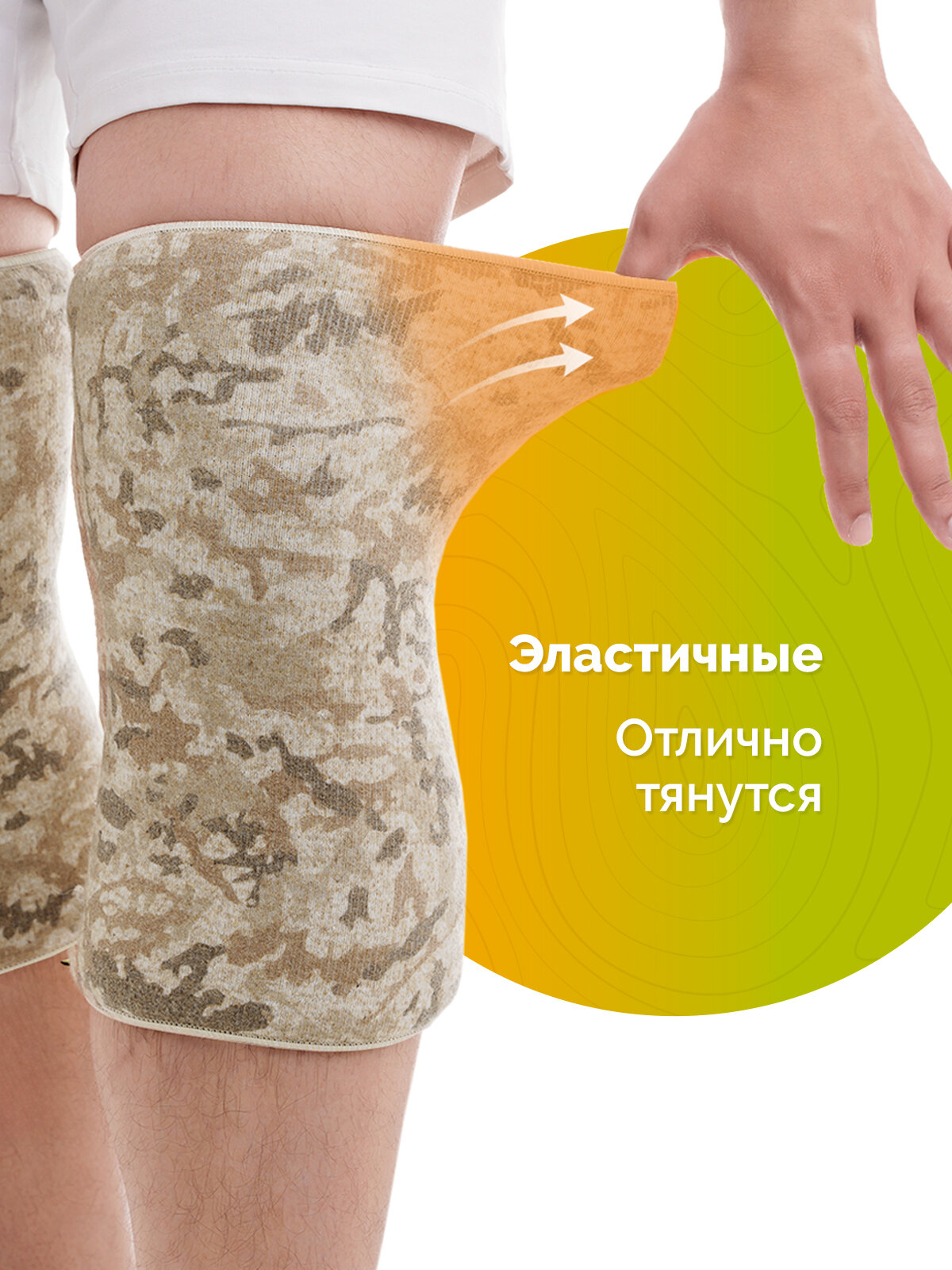 Наколенники из овечьей шерсти «Холти» эластичные согревающие лечебные, теплый бандаж на коленный сустав M (2 шт.), камуфляж