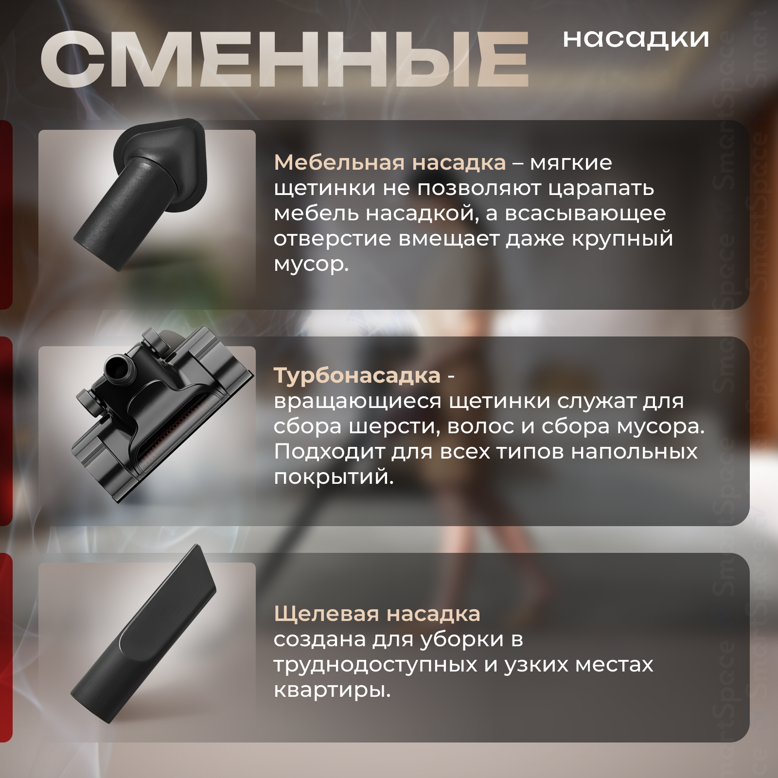 | Минусы: | Неплохо бы придумать держатель для насадок, чтобы всегда были под рукой и не приходилось в процессе уборки постоянно их искать. |