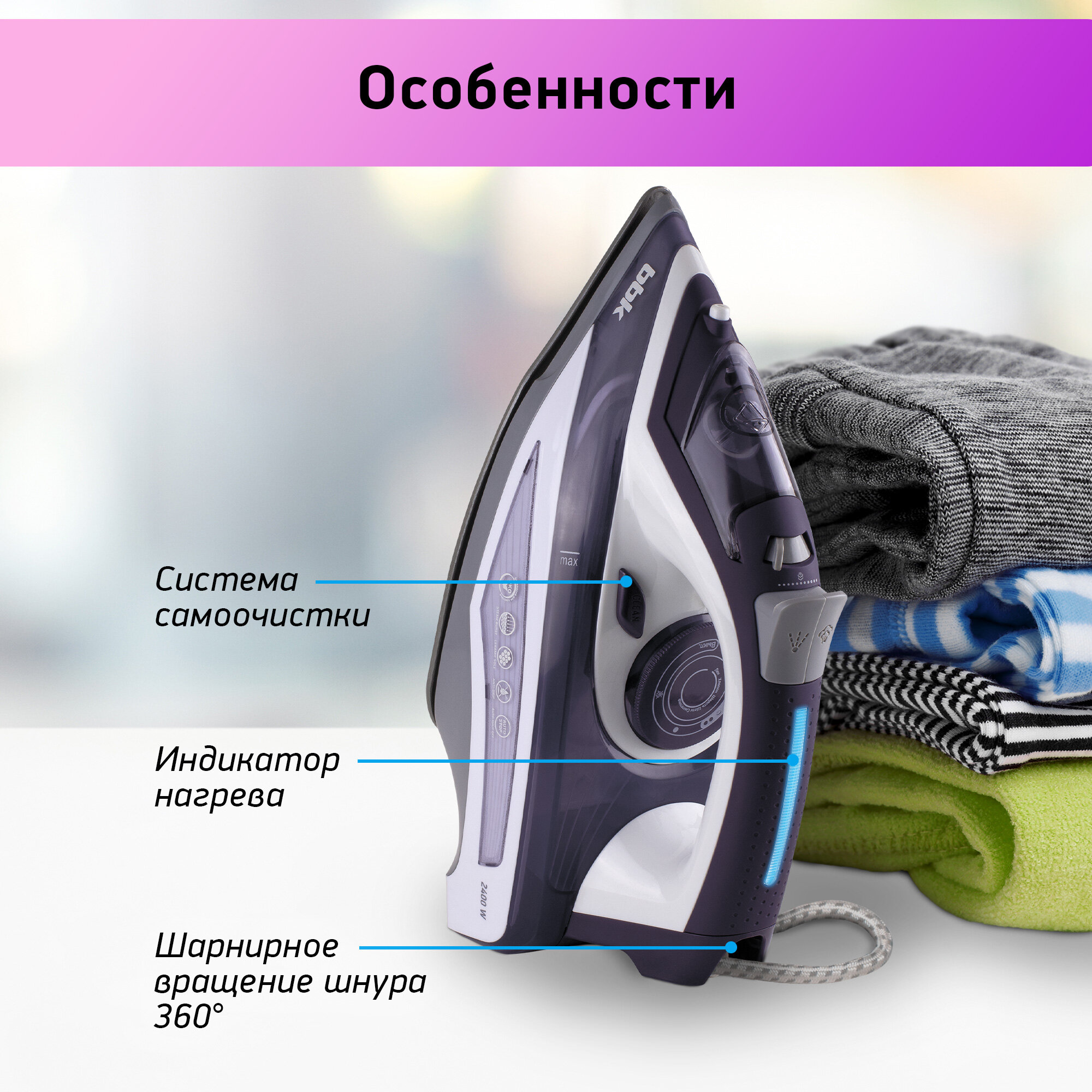Утюг BBK ISE-2404, 2400 Вт, фиолетовый/белый