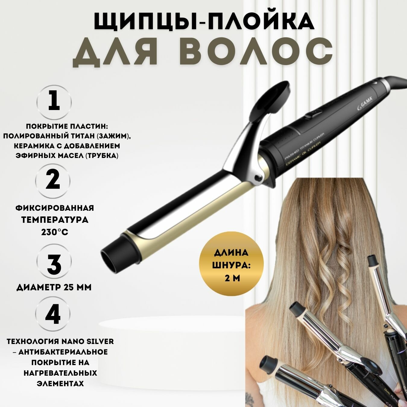 Щипцы для завивки Ga.ma Rgstd-n 33 (GC0203)Щипцы для завивки волос, диаметр 33 мм. Инфра-красный наг