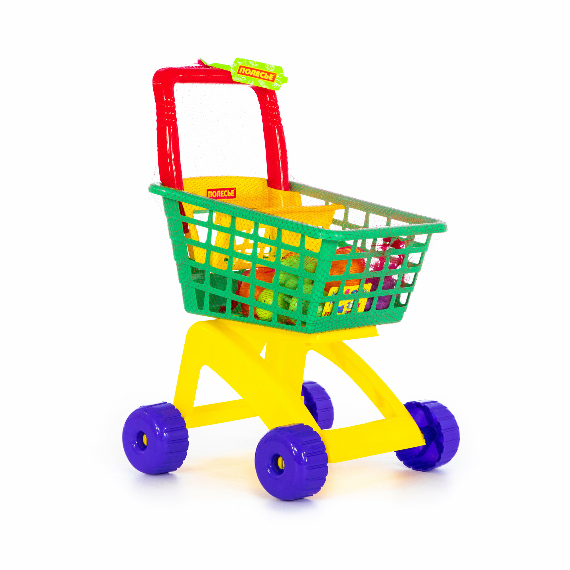 Полесье Тележка для маркета Мини + набор продуктов №15 (12 элементов) (в сеточке)