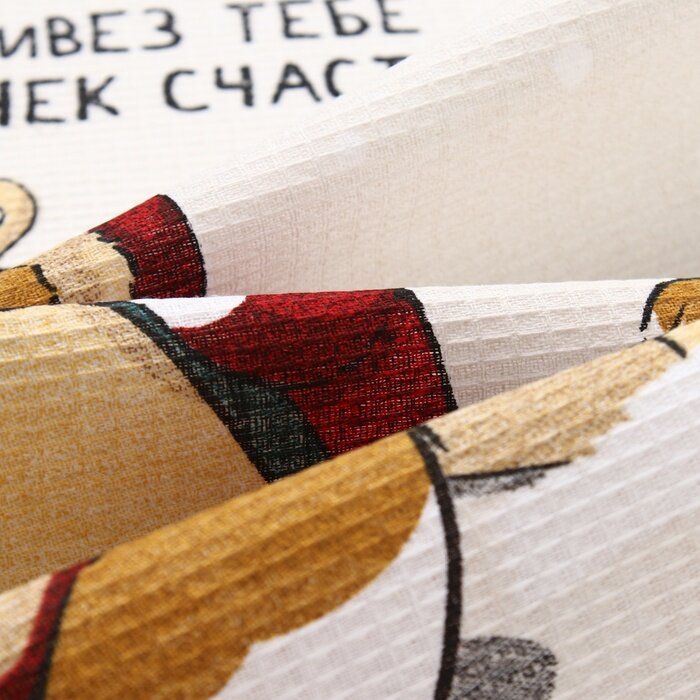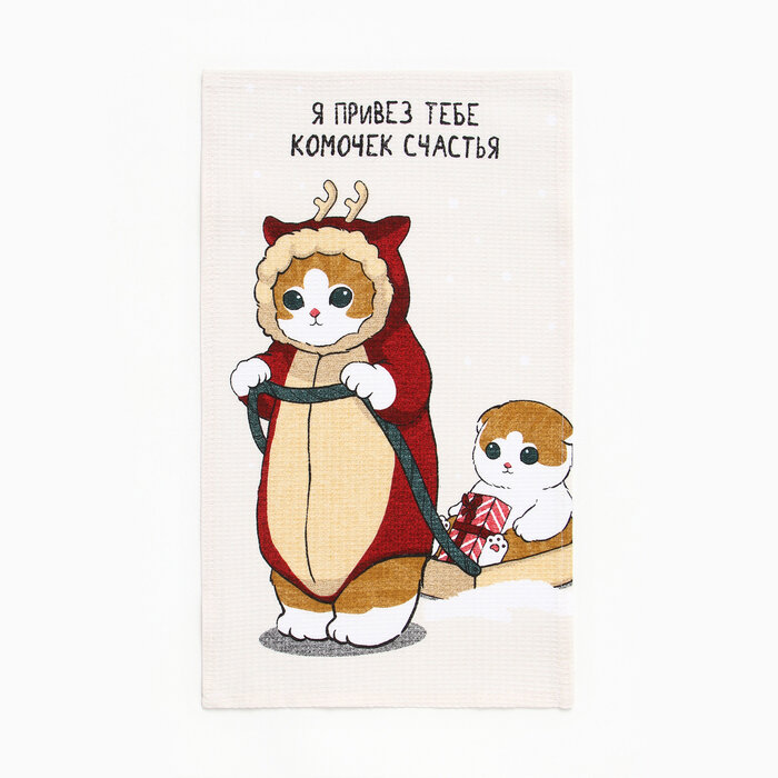 Набор новогодних полотенец Доляна "Помурчим в новом году" 28х46 см - 3штуки, 100% хлопок, вафля 160 г/м2 интересное: