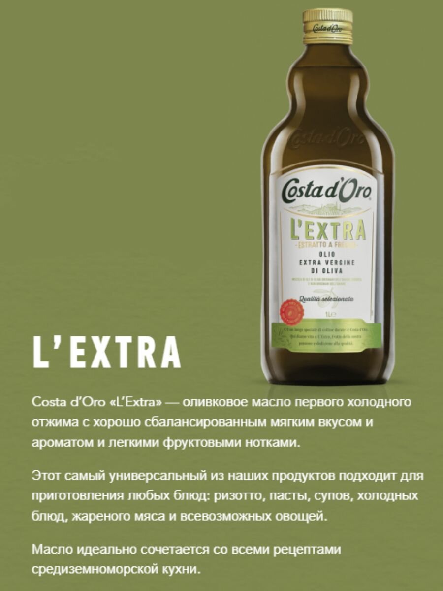Оливковое масло Costa d'Oro L'Extra Extra Virgin нерафинированное, 1 л