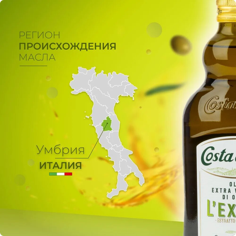 Оливковое масло COSTA D'ORO Extra Virgin нерафинированное высшего качества 1 л стеклянная бутылка