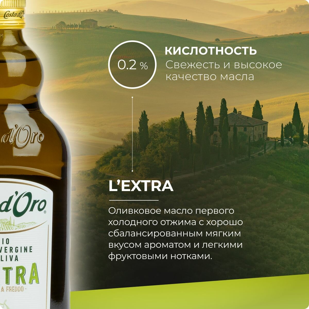 Оливковое масло Costa d'Oro L`Extra высшего качества, нерафинированное, 1 л