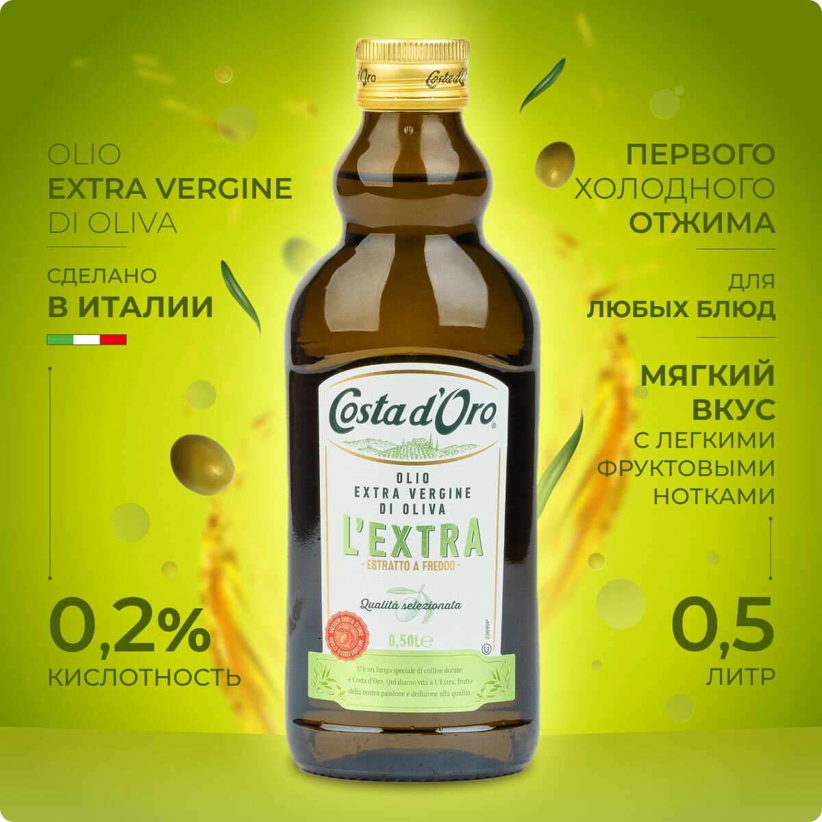 Оливковое масло Costa d'Oro L'Extra Extra Virgin нерафинированное, 500 мл