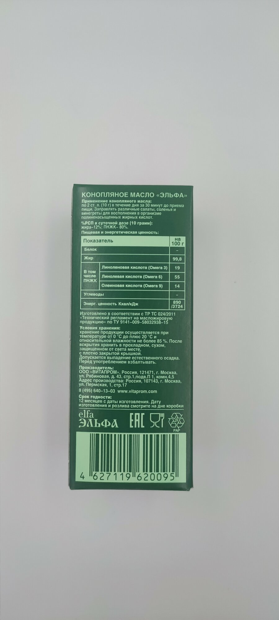 Конопляное масло холодного отжима Эльфа 100 мл интересное: