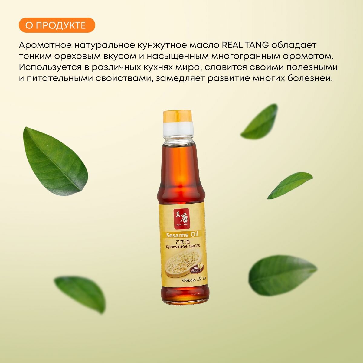 Купить Кунжутное масло для еды нерафинированное, горячий отжим REAL TANG, 150 мл