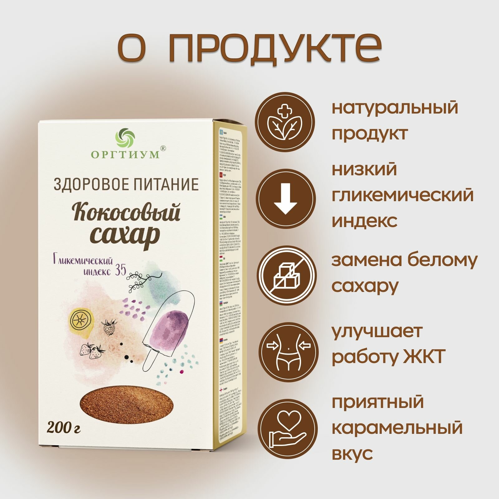 Кокосовый сахар натуральный органический Оргтиум, 200 гр интересное: