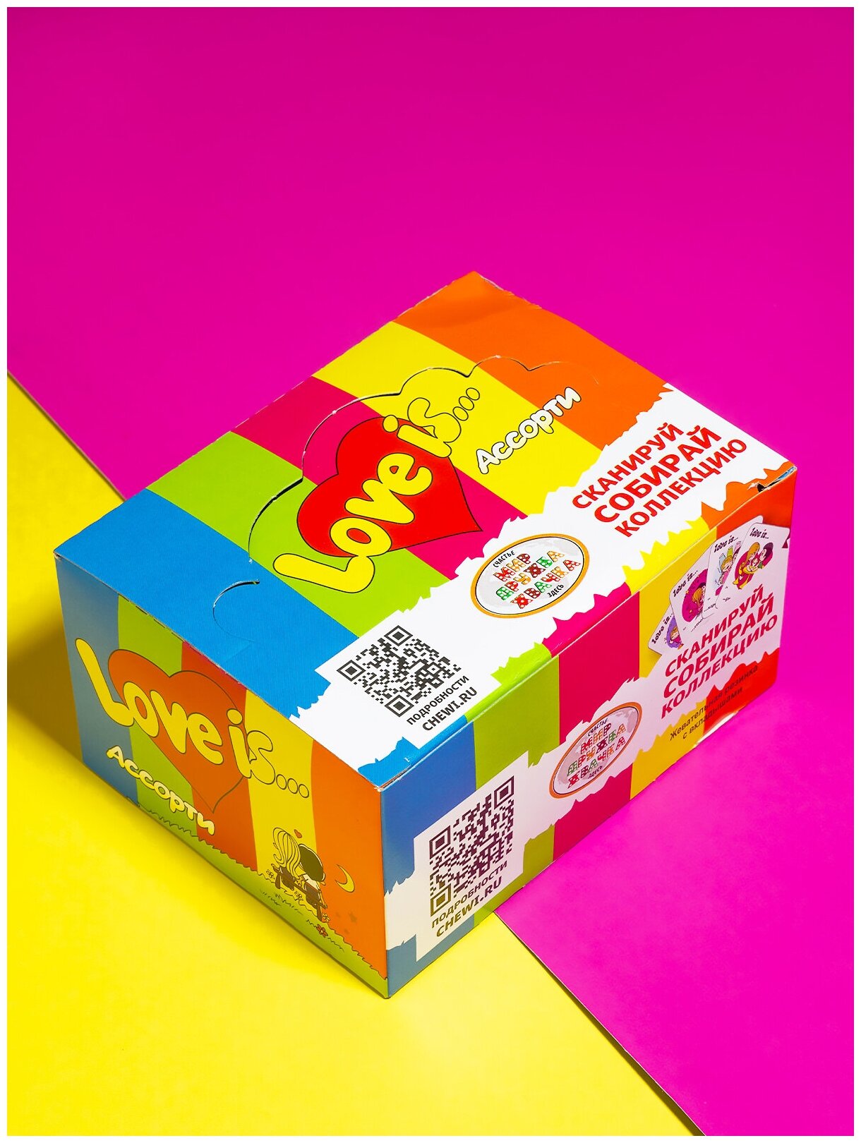 Жевательная резинка Love is Ассорти, блок / 100 шт, жвачка из 90-х ( Лов из Лов ис Ловис Турбо Turbo )