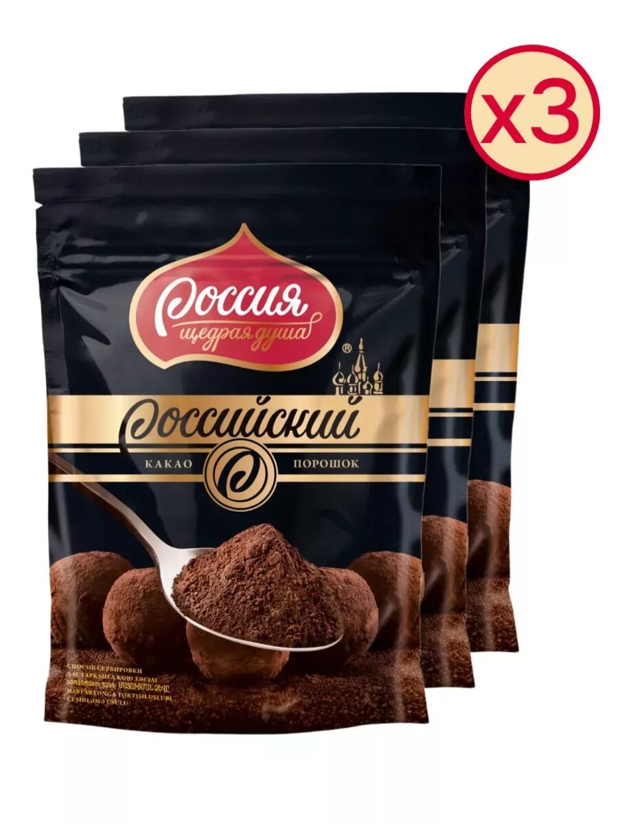 Купить "Какао-порошок Россия щедрая душа" 3 упаковки по 100 грамм