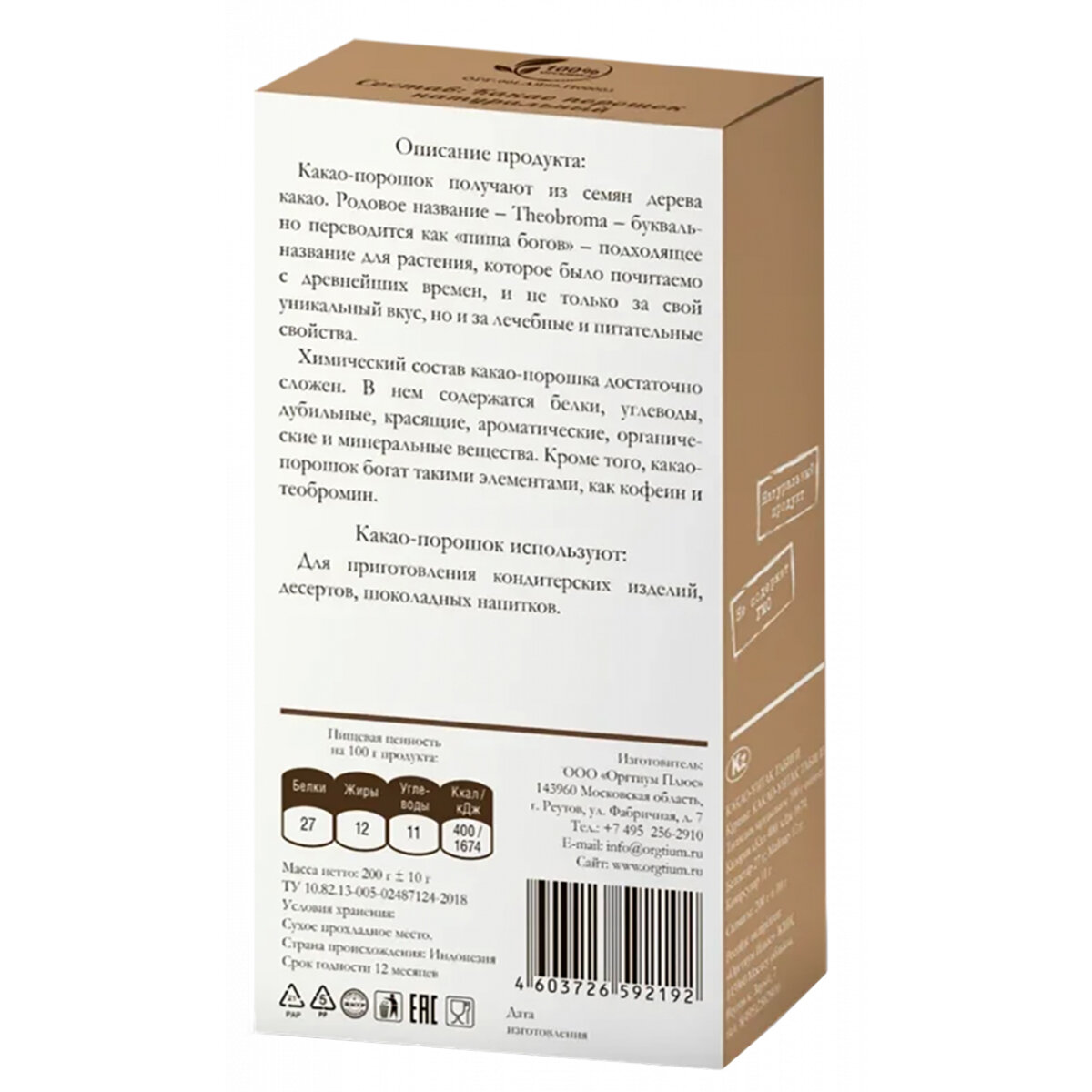 Какао порошок нат.200г, Оргтиум